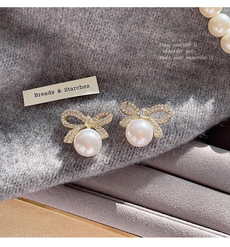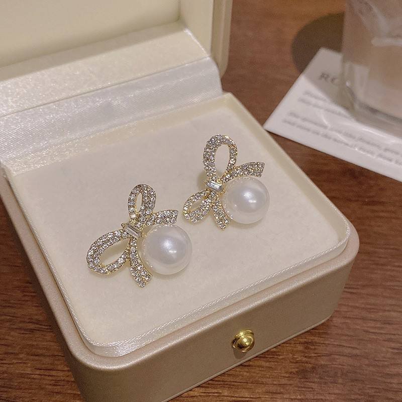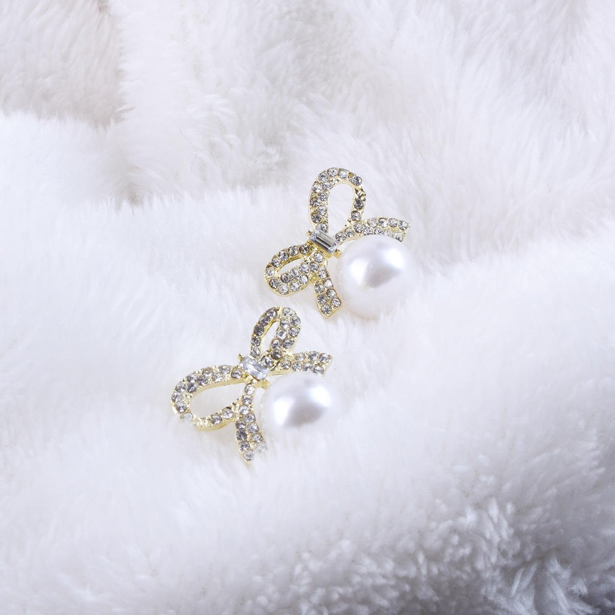 Bow Knot Pearl Earrings with Zircon – Korean Style (PJX-113)
