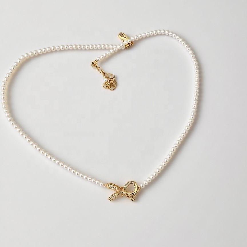 PQT-992 – Bow Shape Pearl Pendant Necklace for Women